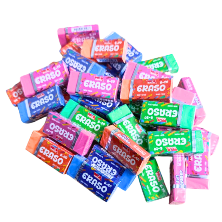 Erase cleanly and smoothly with Bahadur ERASO Colorful Rubber Erasers, designed for students, artists, and office use. This value pack of 40 erasers offers soft texture and dust-free erasing, keeping notebooks and drawings neat and clean.