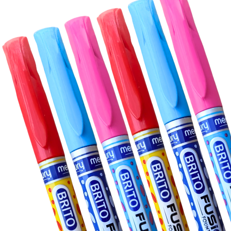 Upgrade your writing experience with the BRITO FUSION Fountain Pens Pack of 6, specially designed for students, professionals and daily writing use. These fountain pens provide a smooth and consistent ink flow that makes handwriting neat, clean and attractive.
