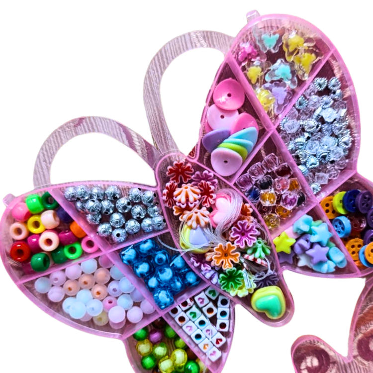 The attractive butterfly case keeps beads and accessories neatly arranged. It is lightweight, portable, and easy to carry — perfect for playdates or travel.