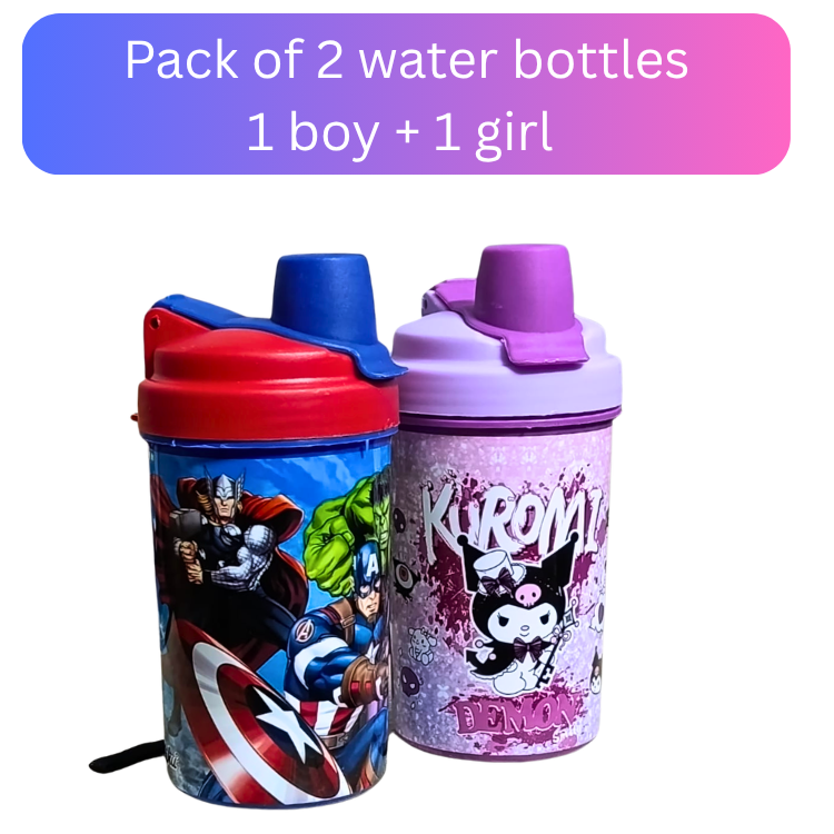Pack of 2 Kids Cartoon Water Bottles Leak Proof Durable School Bottles Boys & Girls | MR E Store
